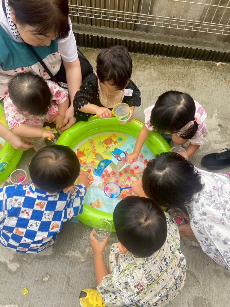 今年は水遊び開始を早めました。シャワープールで「わ~い」